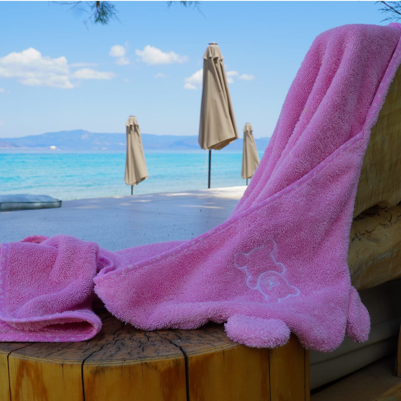 BOBILOV Ręcznik kąpielowy bawełna egipska frotte haft miś różowy premium 130x65 cm